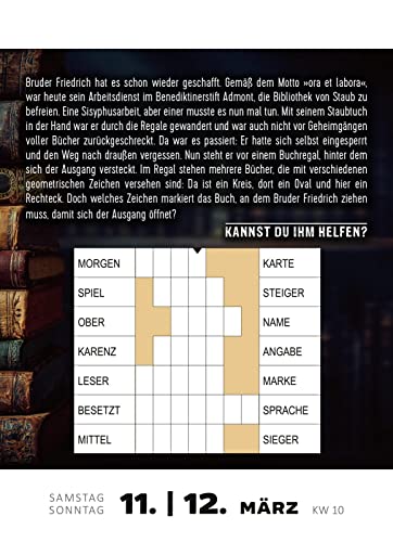 Jedes Rätsel ist in eine neue Kurzgeschichte eingebettet. Der Autor Hubert Schedlbauer liefert ein Feuerwerk voller Witz und schwarzem Humor, Spannung und berührenden Momenten – das ist allerbestes Entertainment für jeden Tag! Ein außergewöhnlicher Kalender für alle Rätselfreunde.