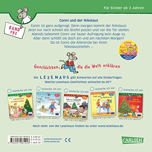 Specification: LESEMAUS 192: Conni und der Nikolaus (192) Taschenbuch – 1. Oktober 2020